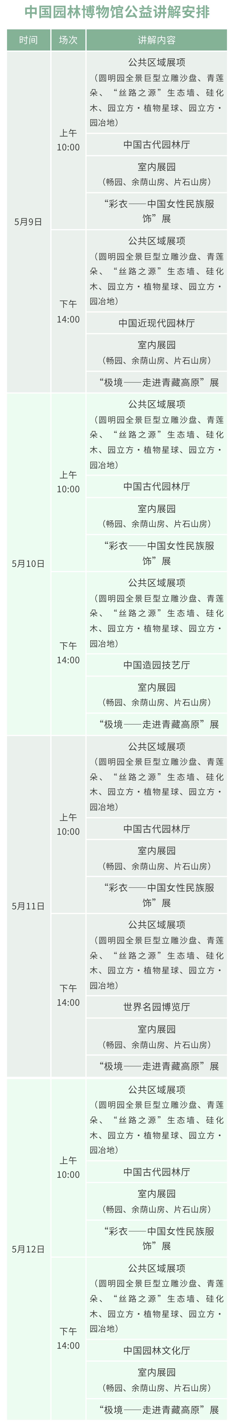 - 中国园林博物馆 展厅公益讲解安排(5月9日-5月12日)